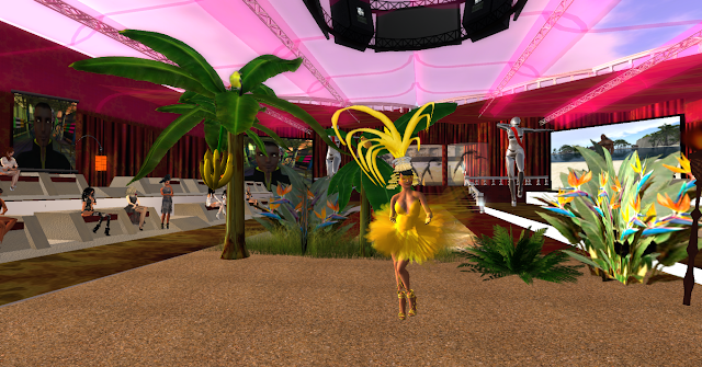 Sunrae danced to the tune of Yellow Bird, by Goombay Dance Band. Her yellow feathers really stand out in this dance. And one thing she love most in SL is she can dance like a fool with high heels on which makes her very talented. In RL she can barely walk in them. She hopes that her outfit will rezzes quickly or seeing more than a yellow bird. She added " Its okay there is no extra charge, it's on the house. Let's face it; there is just no greater thrill than a naked pixel right?" Flora Stipe says nah... the birdie was cute and nice.